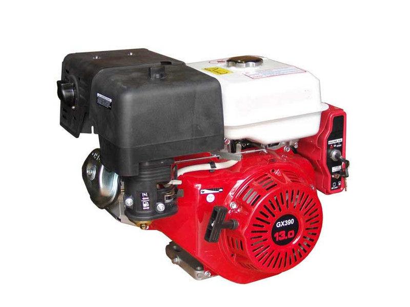 Бензиновый двигатель модели GX390 воздушного охлаждения, OHV, мощностью 13,0 л.с., гильзованный, моторесур 3000 моточасов. Изготовлен на заводах ведущих компаний Китая по лицеyзии компании HONDA. Рекомендуем приобретение этого двигателя для установки на минитракторы и мотоблоки «Беларус», генераторы, резчики швов и другую технику. В данном двигателе установлена система аварийного отключения двигателя при низком уровне масла.